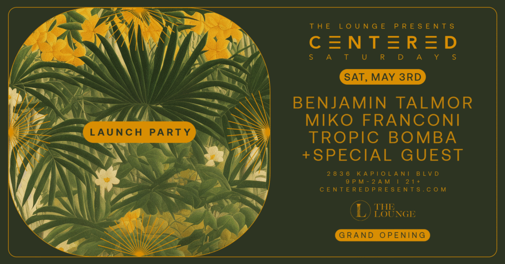 Join us for the official grand opening of Honolulu’s freshest dance music source, and the launch of our new Saturday weekly at The Lounge.