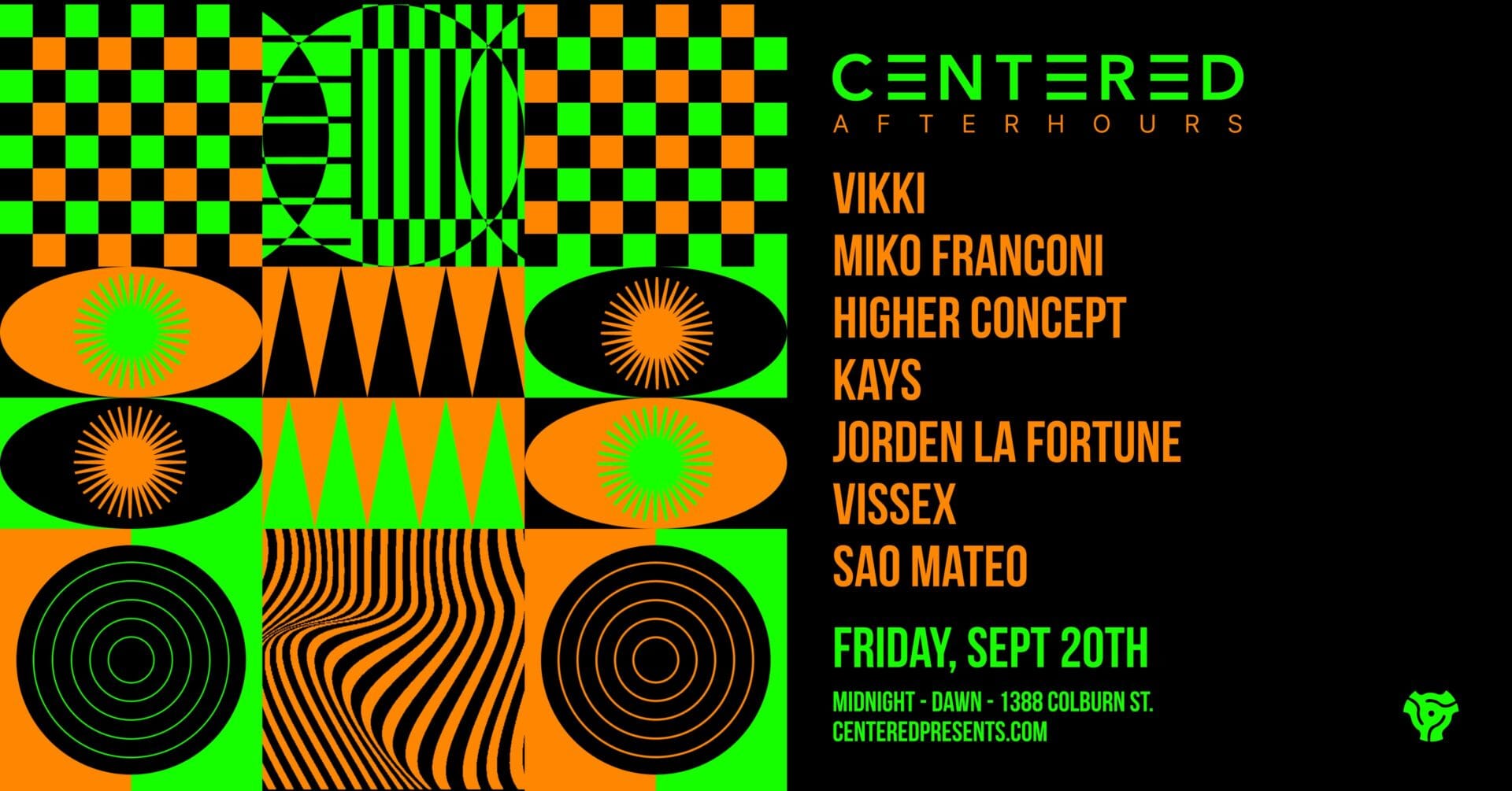 Saturday, Sept 7th CENTERED AFTERHOURS DOC MARTIN (SUBLEVEL | LOS ANGELES) MIKO FRANCONI CHRIS COSMO HIGHER CONCEPT BONYA VICKY VILLAFANE SET TIMES: UPSTAIRS: 12-1A | HIGHER CONCEPT 1-230 | CHRIS COSMO 230-430 | DOC MARTIN 430-CLOSE | MIKO FRANCONI DOWNSTAIRS: 12-2A | BONYA 2-4 | VICKY VILLAFANE 4-6 | HIGHER CONCEPT We're making our return to ... Read moreCentered Afterhours – DOC MARTIN (Sublevel | LA), MIKO FRANCONI + more