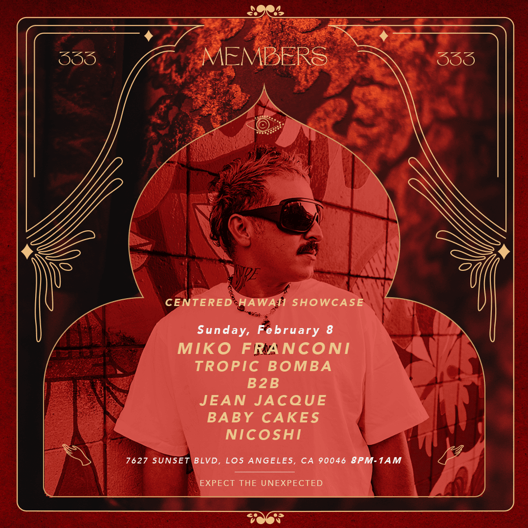 Sunday, Feb 8th Centered Hawaii is bringing our sound and event approach to Los Angeles for a focused showcase at Members Restaurant & Club on Sunset Boulevard. This marks an important step in expanding the Centered footprint beyond Hawaii while staying true to the foundation we’ve built at home through house and techno. Over the ... Read moreLOS ANGELES – Centered Hawaii Showcase @ Members (Sunset Blvd)