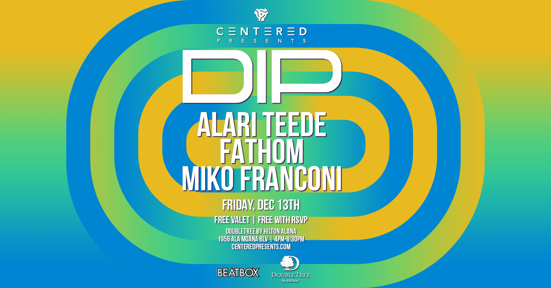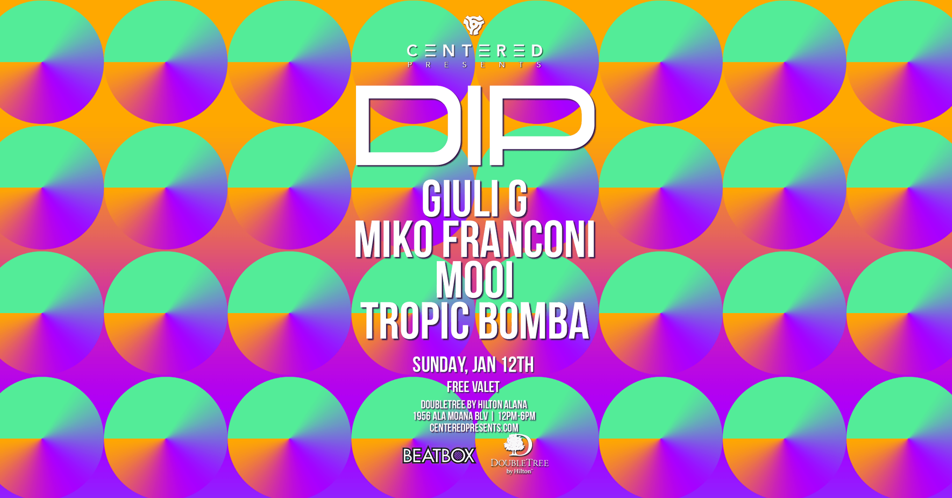 Sunday, Feb 16th CENTERED PRESENTS,DIP We're back poolside at the beautiful Doubletree Alana on the edge of Waikiki for a very special HOLIDAY WEEKEND edition of DIP. We're beyond thrilled to welcome our first international DJ as a SURPRISE GUEST, joined by residents PANCHO and MIKO FRANCONI for some much needed dancing in the sun. 1PM-6PM | DOUBLETREE ... Read moreDIP @ Doubletree Alana by Hilton (Pool Party)
