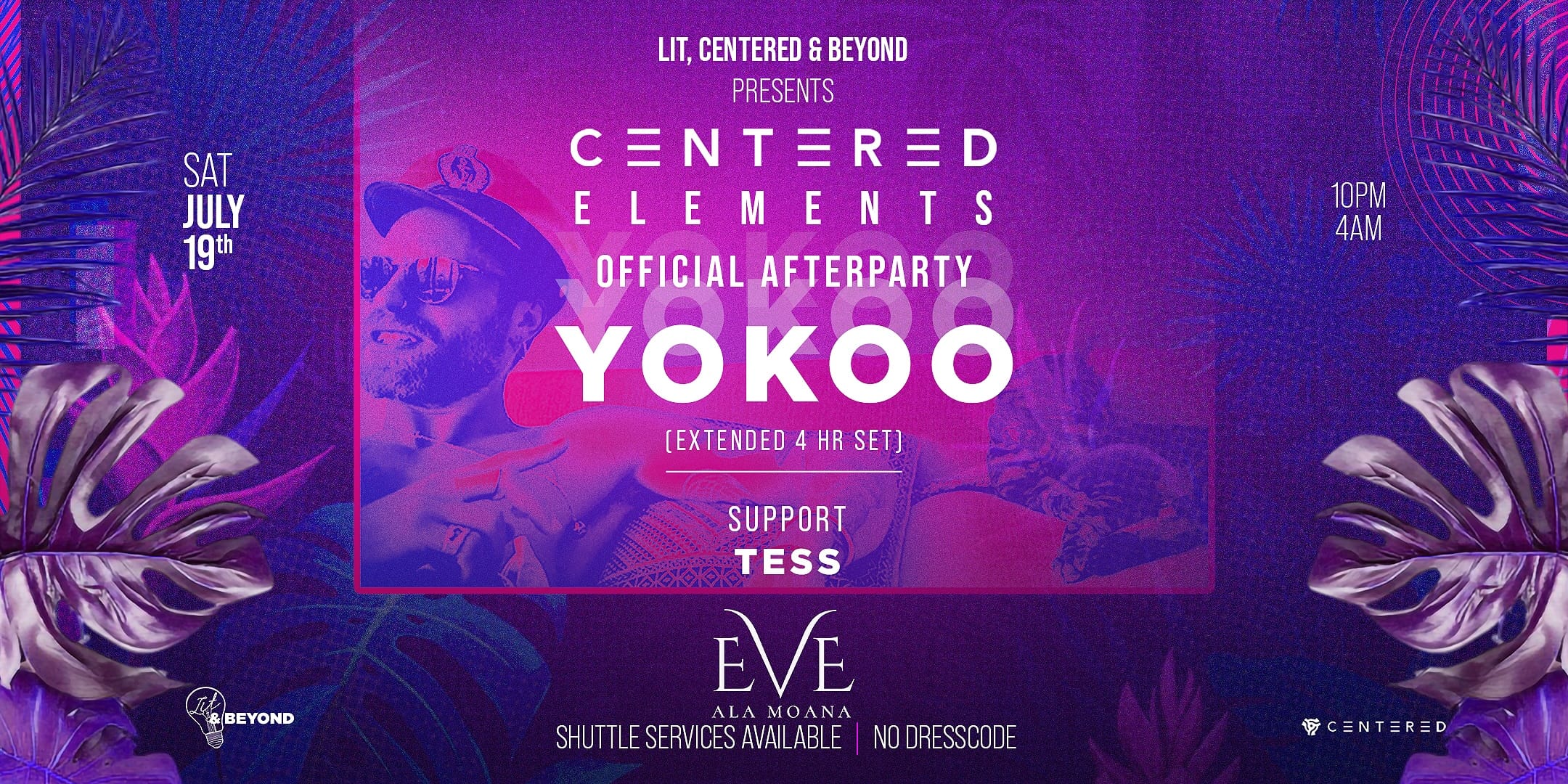 EVE ALAMOANA 1450 ALAMOANA BLVD., #1299, HONOLULU, United StatesSaturday, July 19th - EVE ALAMOANA LIT, CENTERED & BEYOND presents, AFTER ELEMENTS YokoO (Satya / All Day I Dream / Extended 4-hr set) BIO: YokoO is a globally respected DJ and producer known for his deep, emotive soundscapes and spiritual approach to house music. A key artist on All Day I Dream, YokoO has ... Read moreAFTER ELEMENTS – Official Afterparty with YokoO (Satya) [4 hr extended set]