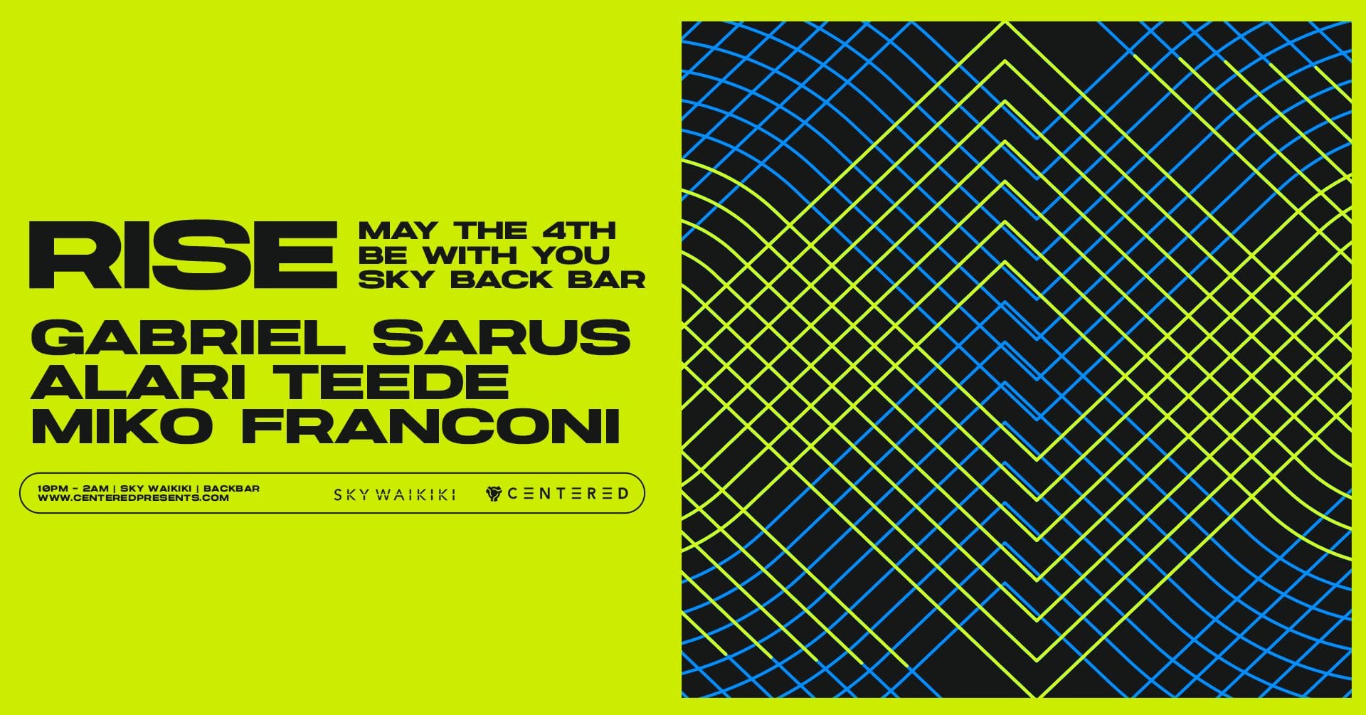 May 4th, 2024 RISE @ SKY WAIKIKI GABRIEL SARUS ALARI TEEDE MIKO FRANCONI 10P-2A | SKY BACKBAR | 21+ CENTEREDPRESENTS.COM