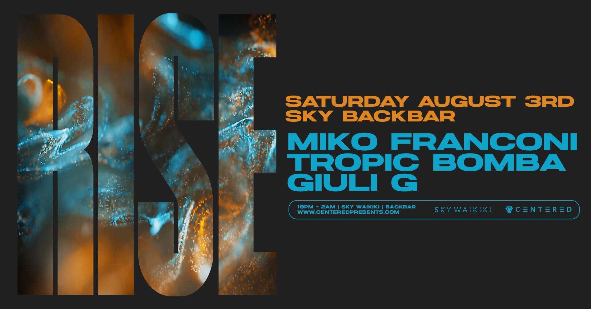 Aug 3rd, 2024 RISE @ SKY WAIKIKI 10-1045 | MIKO FRANCONI 1045-1145 | GIULI G 1145-1230A | TROPIC BOMBA 1230-CLOSE | B3B SKY WAIKIKI (BACKBAR) CENTEREDPRESENTS.COM