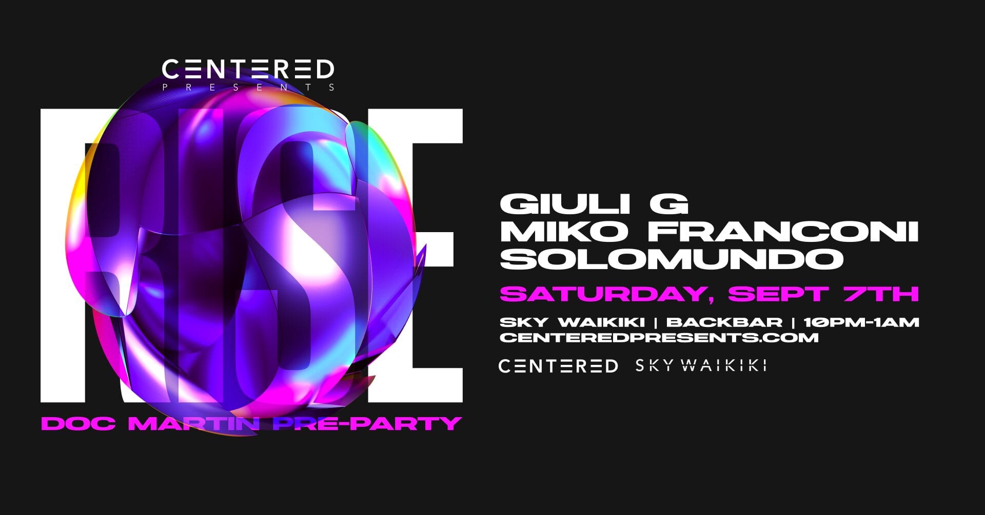 Saturday, Sept 7th RISE @ SKY WAIKIKI GIULI G MIKO FRANCONI SOLOMUNDO 10P-1A | SKY WAIKIKI BACKBAR CENTEREDPRESENTS.COM