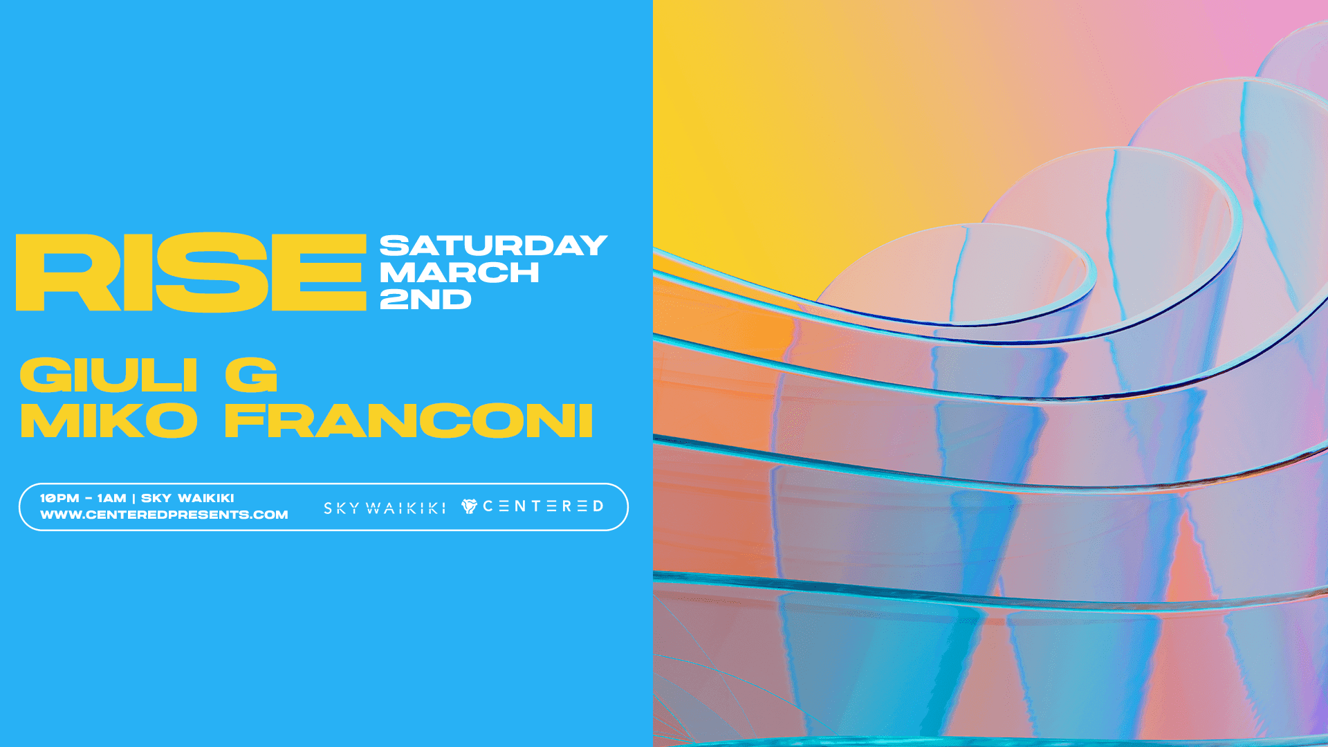 SKY WAIKIKI 2270 Kalākaua Ave, Honolulu, HI 96815, Honolulu, HI, USRISE at SKY WAIKIKI every First Saturday of the month. Saturday, March 2nd GIULI G + MIKO FRANCONI 10P-130A | Sky Waikiki Backbar centeredpresents.com $20 cover at the door | Bottle Service available upon request